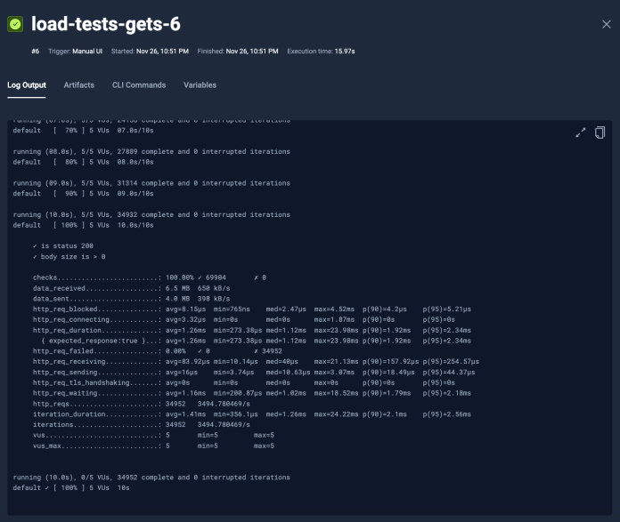 Finally, we can run the load-tests-gets test with the following command: