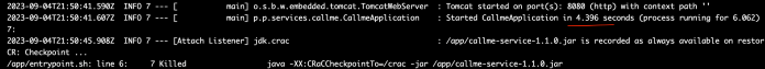 java -XX:CRaCCheckpointTo=/crac -jar /app/callme-service-1.1.0.jar&
