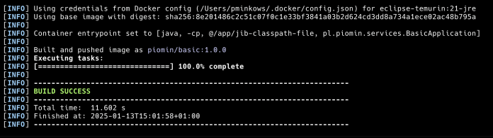mvn clean package -DskipTests jib:buildShellSessionHere’s the result of my initial build.