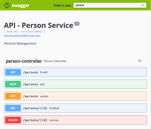 After running the Spring Boot app you can display the list of available REST endpoints by opening the Swagger UI page http://localhost:8080/swagger-ui.html.