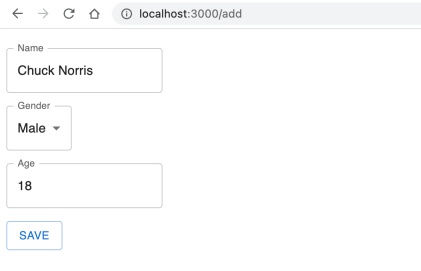 (11) – there is a Material Button on the page that redirects us the /add context handled by the AddPerson component