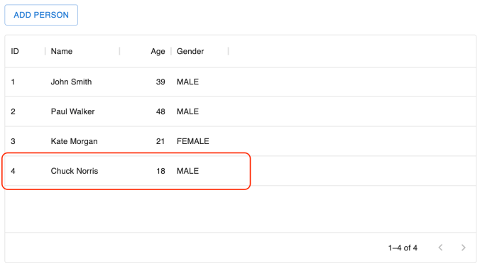 Now we double-click on the selected row. I would probably need to work on the look of that component 🙂 But it works fine – it displays the details of the person with the id equal to 4.