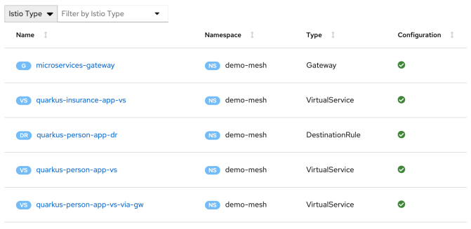 We can verify all the existing Istio objects using Kiali.
