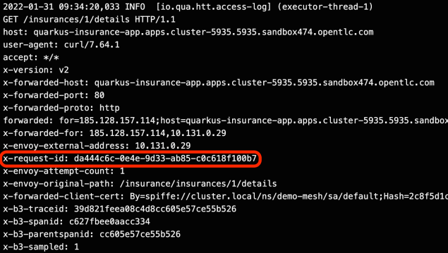 Here’s the access log from the Quarkus application: