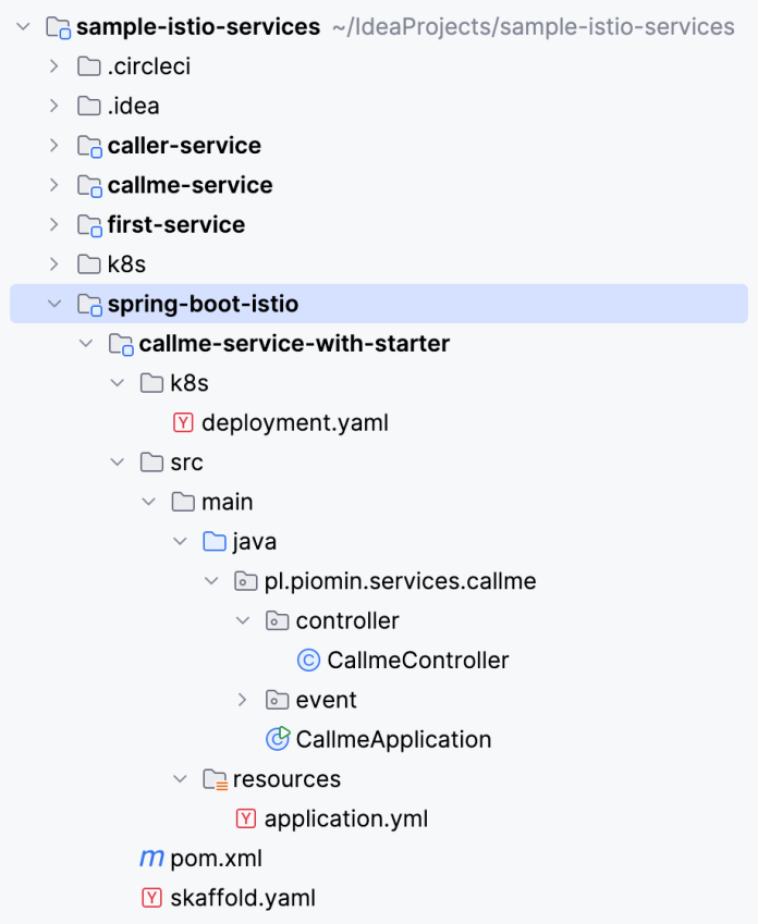 Feel free to use my source code if you’d like to try it out yourself. To do that, you must clone my sample GitHub repository. Two sample applications for this exercise are available in the spring-boot-istio directory.