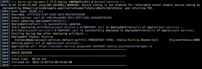 Then we need to build the app and deploy it on Azure Spring Apps with the following command: