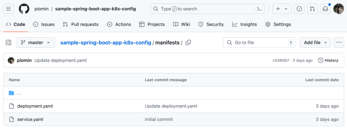 The second one contains YAML manifests with Deployment for Argo CD.