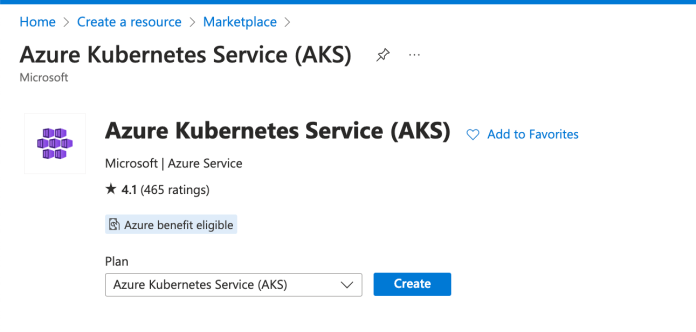 After signing in to Azure Portal we can create a resource group for our cluster. The name of my resource group is aks. Then we need to find the Azure Kubernetes Service (AKS) in the marketplace. We are creating the instance of AKS in the aks resource group.