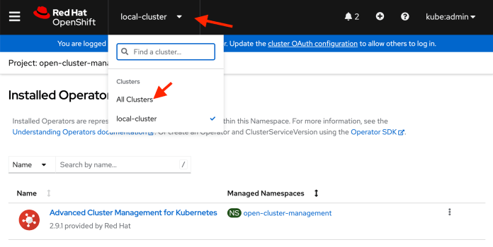 Once the installation is completed, you will see the new menu item at the top of the dashboard allowing you to switch to the “All Clusters” view. Let’s do it. After that, we can proceed to the next step.