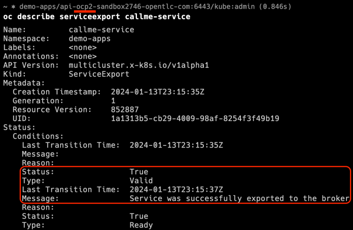 We can verify if everything turned out okay by checking out the ServiceExport object status: