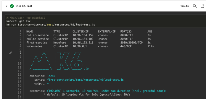 first-service/src/test/resources/k6/load-test.jsfile. - After doing all the required steps, it is important to remove the Kind cluster