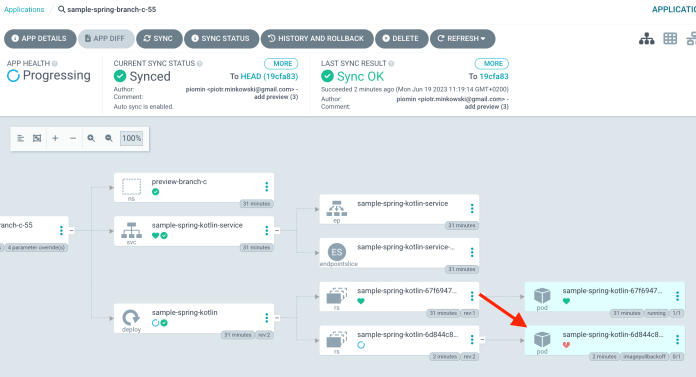 If you would like to try it by yourself, you may always take a look at my source code. To do that you need to clone my two GitHub repositories. First of them, contains the source code of our sample app written in Kotlin. The second of them contains configuration managed by ArgoCD with YAML manifests for creating preview environments on Kubernetes. Finally, you should just follow my instructions.