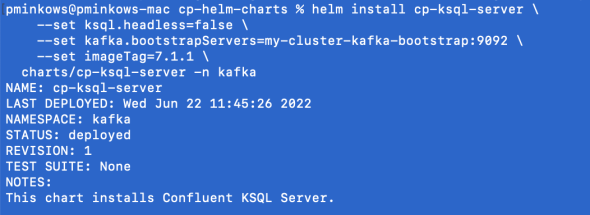 kubectlCLI – to interact with the cluster- Helm – we will use it to install the ksqlDB server on Kubernetes. If you don’t have Helm, you will have to install it