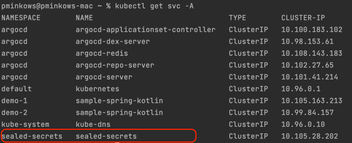 We need to override both the controller name and namespace in the kubeseal command with the --controller-name and --controller-namespace parameters. Here’s our command: