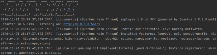 Thanks to the HTTP random port feature we don’t have to care about port conflicts between applications. So, we can run as many instances as we need. To run a single instance of application we should use the quarkus:dev Maven command.