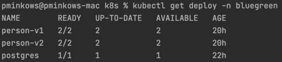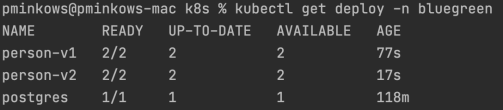 The Deployment manifest is very similar to the previous version of our application. Of course, the only difference is in the version label.