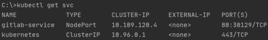 Finally, we can apply the GitLab manifest with Deployment and Service to Kubernetes. To do that you just need to execute the command kubectl apply -f k8s/gitlab.yaml. Let’s check the address of gitlab-service.