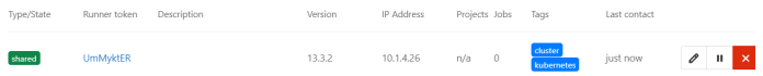 The GitLab runner tries to communicate with the GitLab master. To verify that everything works fine, we need to go to the section “Overview” -> “Runners”. If you see the IP address and version number, it means that the runner is able to communicate with the master. In case of any problems, you should take a look at the pod logs.