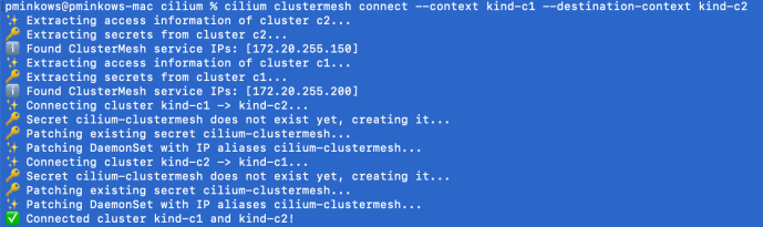 $ cilium connectivity test --context kind-c1 --multi-cluster kind-c2