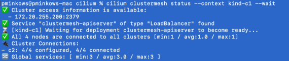 After that, let’s verify the status of the Cilium cluster mesh once again: