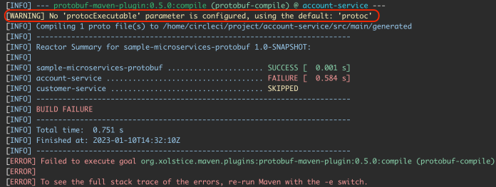 Let’s just take a look at this example. It is from the following repository. I’m trying to generate a class definition from the Protocol Buffers schema file. As you see, the plugin used for that is not able to find the protoc executable. Honestly, I don’t remember how it worked before. Maybe I installed something on my laptop… Anyway, the solution was to use another plugin that doesn’t require any additional executables. Of course, I need to do it manually.