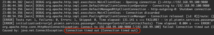 Let’s analyze another example. This time it fails during integration tests from another repository. The test is trying to connect to the Docker container. The problem here is that I was using Windows some years ago and Docker Toolbox was, by default, available under the 192.168.99.100 address. I should not leave such an address in the test. However, once again, I was just running all the tests locally, and at that time they finished successfully.