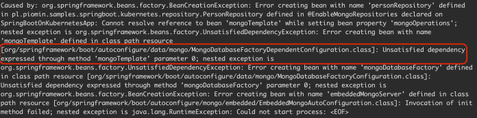 Let’s analyze another example – once again with the Spring Boot update. This time it is related to the Spring Data and Embedded Mongo. The case is very interesting since it fails just on the remote builder. When I’m running the test on my local machine everything works perfectly fine.