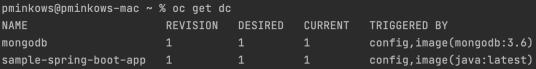 After running odo push let’s switch to oc client. Our application is running on OpenShift as shown below. The same with MongoDB.