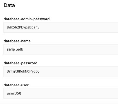 In the next step, we add environment variables to the odo configuration responsible for establishing MongoDB connection: MONGO_USERNAME, MONGO_PASSWORD, and MONGO_DATABASE. Just to simplify, I created a standalone instance of MongoDB on OpenShift using the template. Here are the values in the mongodb secret.