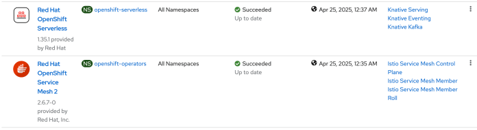 The final step in this phase is to install the OpenShift AI Operator and create the DataScienceCluster object. If the previous installations were successful, everything will be configured automatically after creating the DataScienceCluster object. For instance, OpenShift AI will make the Istio control plane and the Knative Serving component.